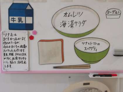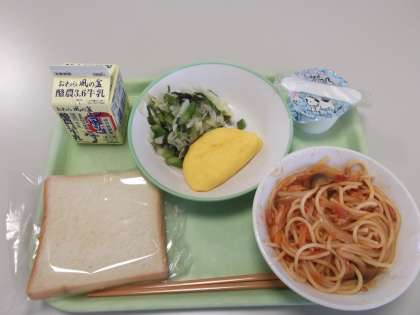 今日の給食 公開日 2021/07/05 更新日 2021/07/05 日々の活動から 7月5日(月) 今日の献立は、次のとおりです。 ○減量食パン ○ツナとトマトのスパゲティ ○オムレツ ○海藻サラダ ○ヨーグルト ○牛乳
