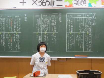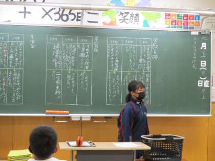 7月5日(月) 1年生の学級活動の様子です。 学級生活目標の振り返りと今後どうするか話し合いました。