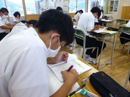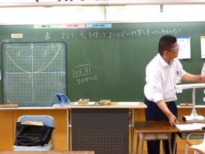 3年1限 数学 公開日 2021/07/06 更新日 2021/07/06 日々の活動から 7月6日(火) 3年生の数学の授業の様子です。 放物線をかいて、その特徴を調べました。 上手に放物線をかのは、とても難しかったです。