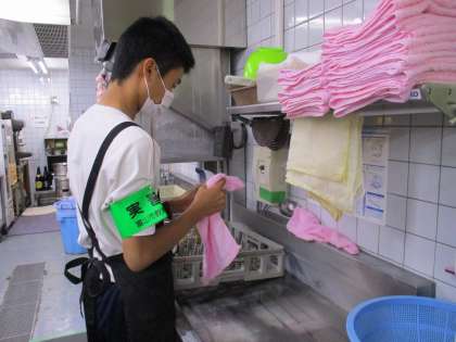 楽今日館で働く2年生の様子です。