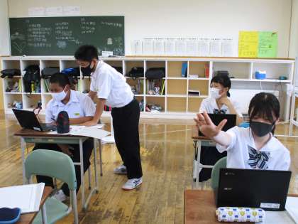 1年1限 「総合的な学習の時間(楡の木タイム)」 公開日 2021/07/07 更新日 2021/07/07 日々の活動から 7月7日(水) 1年生の「総合的な学習の時間(楡の木タイム)」の時間の様子です。 タブレットを使ってビデオ通話ができるか実験していました。