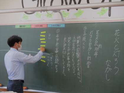 3年2限 道徳 公開日 2021/07/07 更新日 2021/07/07 日々の活動から 7月7日(水) 3年生の道徳の授業の様子です。 「花火と灯ろう流し」という資料を読んで郷土の行事について話し合いました。