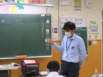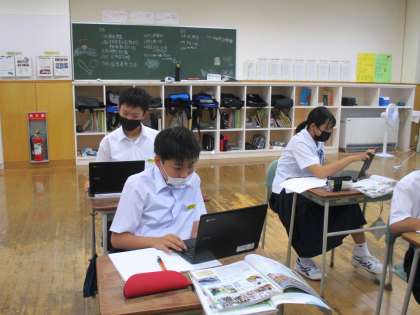 1年6限 社会 公開日 2021/07/07 更新日 2021/07/07 日々の活動から 7月7日(水) 1年生の社会の授業の様子です。 「温帯の中でスペイン(地中海性気候)の人はどんなくらしをしているのだろうか?」という学習課題でした。 スペインの生活様式をタブレットを使って調べました。