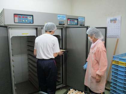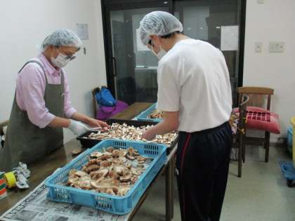 「社会に学ぶ『14歳の挑戦』」3日目 公開日 2021/07/07 更新日 2021/07/07 日々の活動から 7月7日(水) シーテック細入で体験している生徒の様子です。 干ししいたけ作りを行いました。主に、しいたけをはさみで適当な大きさにカットする作業をしました。カットする際には、軸や黒い部分を残さないように気を付けました。最後にカットしたものを乾燥する装置に入れて、職員の方からしいたけの栽培に関する説明を受けました。