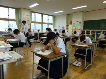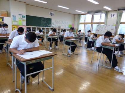 7月8日(木) 本日3年生は、実力テストを行います。 1限目は、社会のテストに真剣に取り組んでいました。