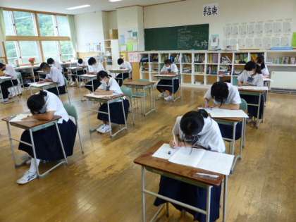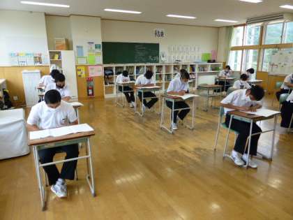 国語の実力テストに取り組んでいる様子です。