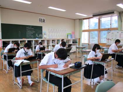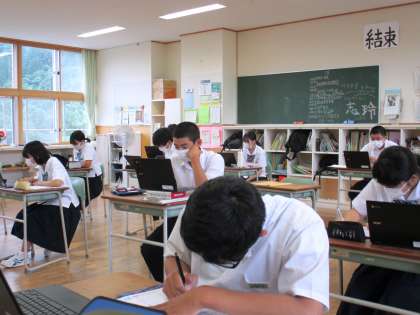 7月9日(金) 3年生の国語の授業の様子です。 タブレットでプレゼンを作成していました。