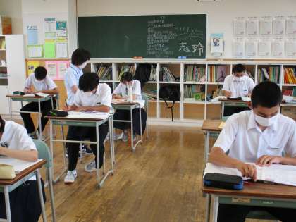 3年2限 数学 公開日 2021/07/09 更新日 2021/07/09 日々の活動から 7月9日(金) 3年生の数学の授業の様子です。 ボート部員がいないので、テスト直しやこれまでの復習をしました。