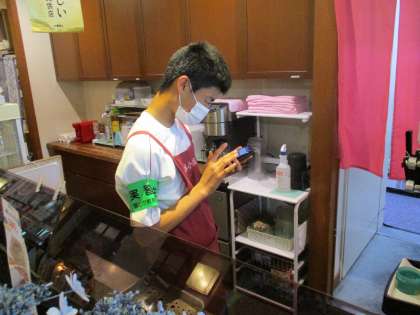 画像中段は、お客さんのオーダーを端末で確認している様子です。