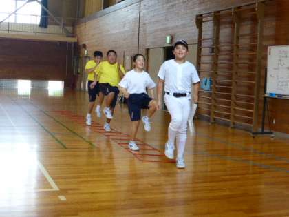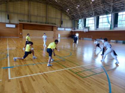 ランニング、体操、ラダー、サーキットトレーニングをして、バドミントンをしました。