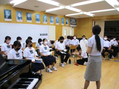 7月12日(月) 1・3年生の合同音楽の様子です。