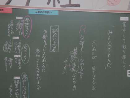 7月12日(月) 2年生の道徳の授業の様子です。 「みんなでとんだ」という題材について話し合いました。