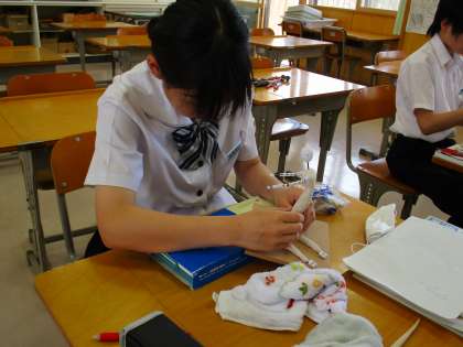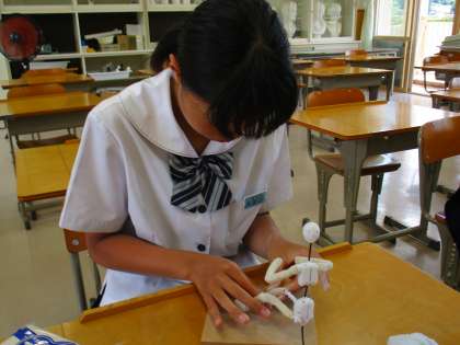 7月13日(火) 2年生の美術の授業の様子です。 針金に粘土を付けて肉付けしました。