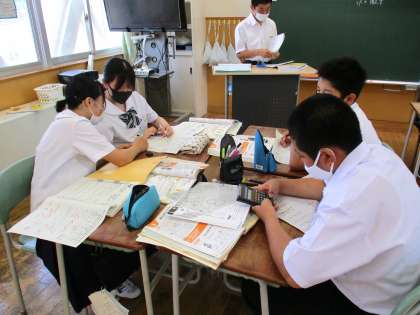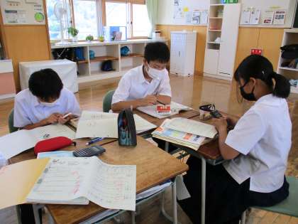 今日は教室で1学期のまとめの授業でプリントを整理したり、ワークの見直しをしたりしました。