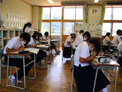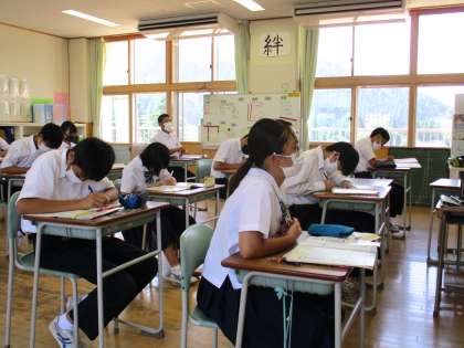 7月14日(水) 3年生の英語の授業の様子です。 「Let's Try」 いろいろな英作文にトライしました。