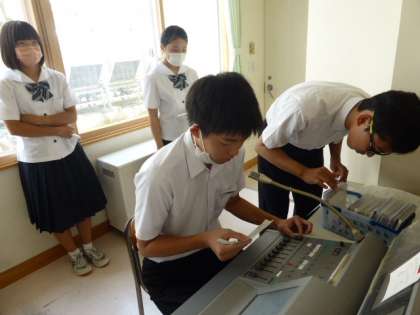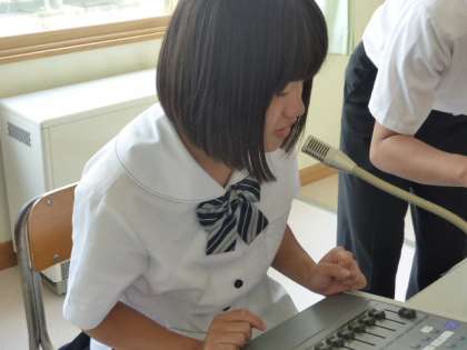 お昼の放送室にて 公開日 2021/07/14 更新日 2021/07/14 日々の活動から 7月14日(水) 本日の給食時の放送で以下のお知らせがありました。 各代表生徒が放送室に来て、それぞれが思いを込めて全校生徒にお知らせしました。 画像上段:環境実践部 明日の「学校クリーニング作戦」について 画像中段:執行部 昼休みの「体育館の使用方法」について 画像下段:厚生実践部 「熱中症対策(熱中症指数)」について