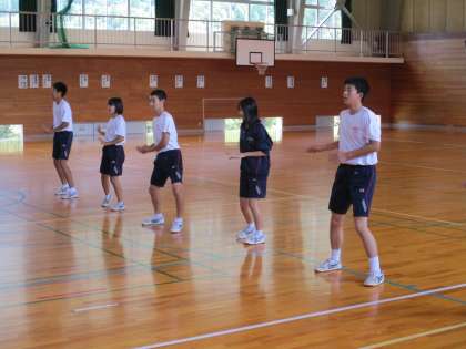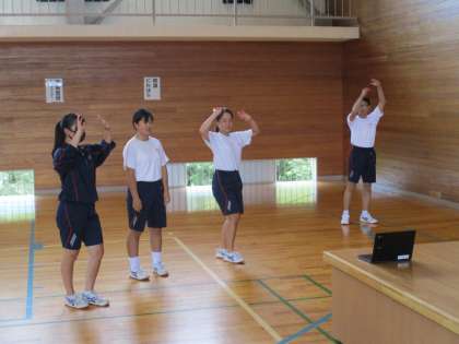 3年1限 保健体育 公開日 2021/07/15 更新日 2021/07/15 日々の活動から 7月15日(木) 3年生の体育の授業の様子です。 体育大会の応援合戦で踊るダンスの構成を考えました。 見ている人たちも楽しめるダンスとなっていました。