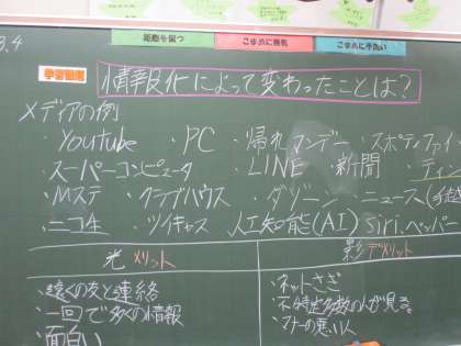 7月15日(木) 3年生の社会の授業の様子です。 「情報化によって変わったことは?」が学習課題でした。