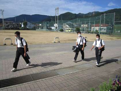 登校風景 公開日 2021/07/16 更新日 2021/07/16 日々の活動から 7月16日(金) 気持ちのよい青空が広がっています。 本校生徒は、今日も元気に登校してきました。 今日は、懇談会2日目です。 保護者の車は正面玄関間に駐車してください。 マスクを着用して来校してください。