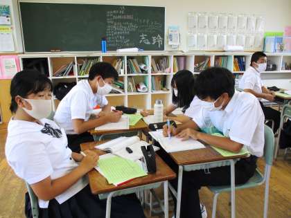 7月16日(金) 3年生の数学の授業の様子です。 計算力を高めるために、多くの練習問題に取り組んでいます。