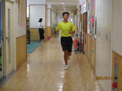 今日は校内を走ってから、格技場でトレーニングをしました。