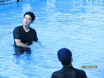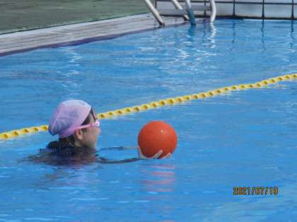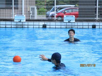 7月19日(月) 2年生の保健体育の授業の様子です。 今日は、ボールを使って楽しみながら泳ぎました。
