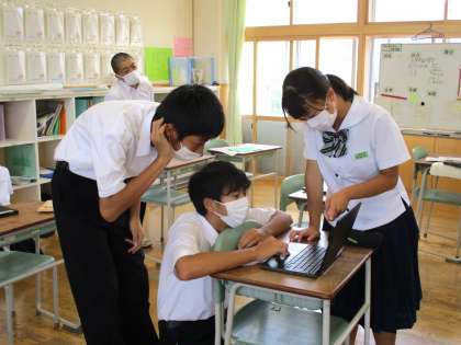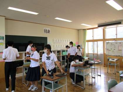 7月21日(水) 3年生の学活の様子です。 夏休み中に持ち帰るタブレットの準備をしていました。