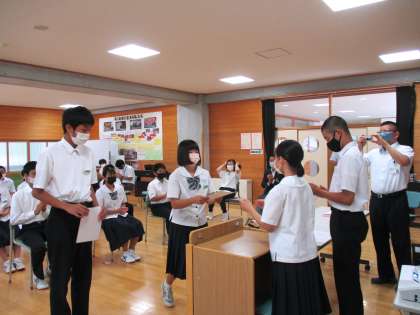 7月21日(水) 厚生実践部から昨日行われた球技大会の表彰状が手渡されました。