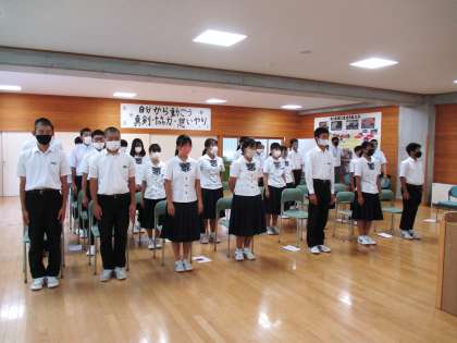 1学期終業式 公開日 2021/07/21 更新日 2021/07/21 日々の活動から 7月21日(水) 終業式の式辞では、鍋田校長から次のような話がありました。 「日常」への感謝、「健康」への感謝、「感謝する心」を大切に! また各学年に、この夏休みの課題を提示し、「充実した36日間の夏休みを過ごしましょう!」と話しました。