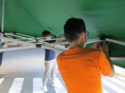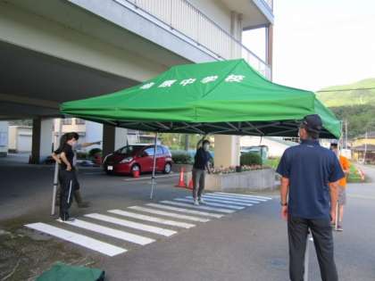 「ユネスコスクールSDGsアシストプロジェクト」防災用テントの活用その1 公開日 2021/08/21 更新日 2021/08/21 日々の活動から 8月21日(土) 本日の「空き缶回収」にて、「ユネスコスクールSDGsアシストプロジェクト」で購入した防災用テントを早速、活用しました。 教員とPTAの皆さんとで協力して、テントの立て方を確認しました。クイックテントということで、簡単に立てることができました。これからいろいろな場面での活用を考えていきたいと思います。