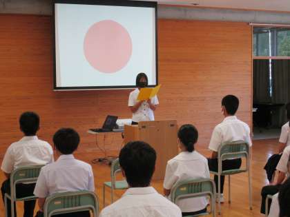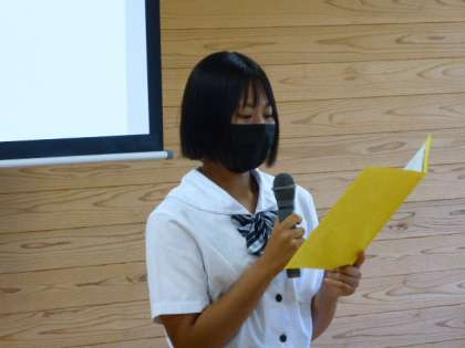始業式に先立ち、第1学年の代表生徒による「意見発表」がありました。