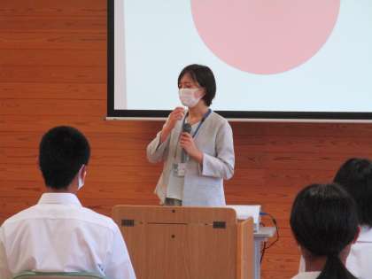 始業式後、養護教諭から「新型コロナ感染症予防対策」について、3つの柱について話がありました。