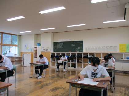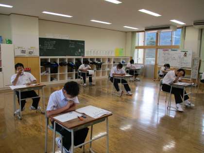 8月30日(月) 1年生の英語の授業の様子です。 前半は、「夏休み明けテスト」をしました。