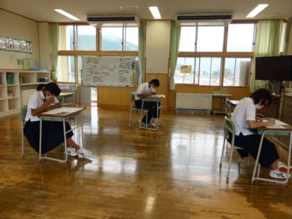 8月31日(火) 2年生の英語の授業の様子です。 「夏休み明けテスト」をしていました。