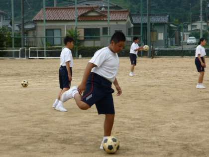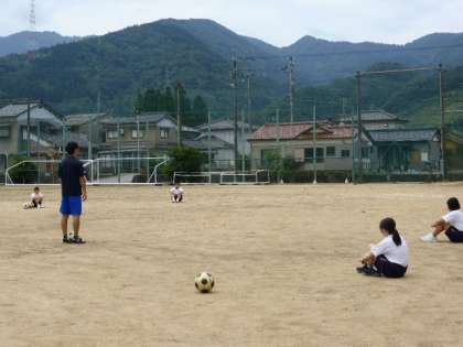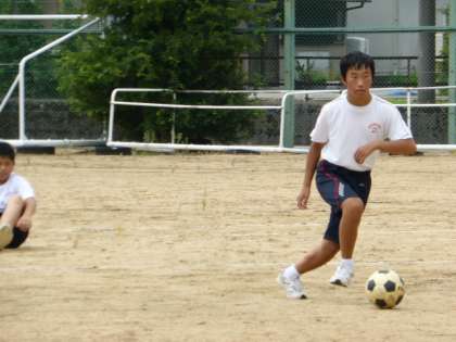 8月31日(火) 1年生の保健体育の授業の様子です。 サッカーのパス練習をしていました。