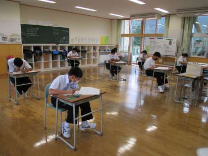 1年3限 国語 公開日 2021/09/01 更新日 2021/09/01 日々の活動から 9月1日(水) 1年生の国語の授業の様子です。 「夏休み明けテスト」を実施しました。 全員集中して取り組んでいました。