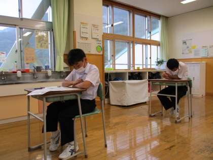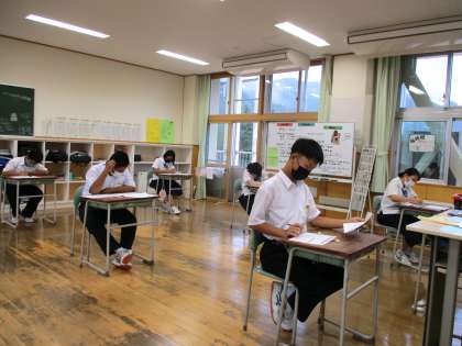 9月1日(水) 1年生の社会の授業の様子です。 「夏休み明けテスト」に取り組んでいました。