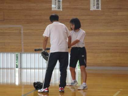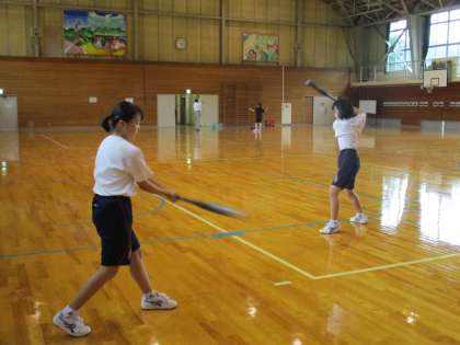 ソフトボール部 公開日 2021/09/01 更新日 2021/09/01 日々の活動から 9月1日(水) 本日のソフトボール部の活動の様子です。 雨が降っていたので、体育館で活動しました。 昨日に引き続き、投球フォームやバッティングフォームを確認しながら練習しました。