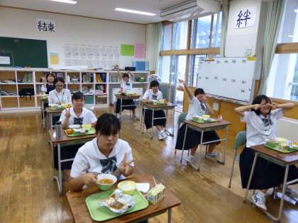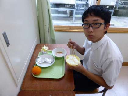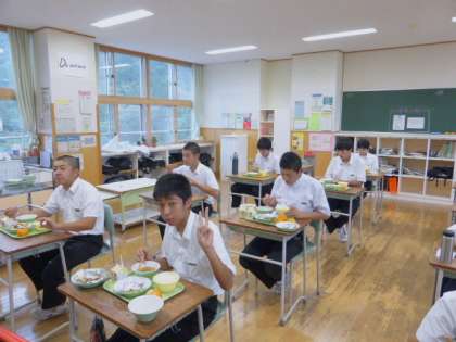 9月2日(木) 3年生の給食風景です。 放送当番の生徒もいました。