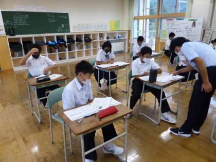 9月2日(木) 1年生の社会の授業の様子です。 夏休み明けテストを返却し、テスト直しをしました。