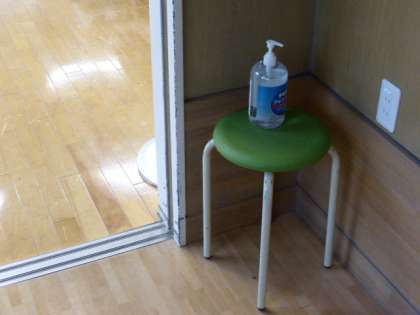 9月2日(木) 画像上段から1年教室 2年教室 3年教室 各教室前の消毒液設置状況です。