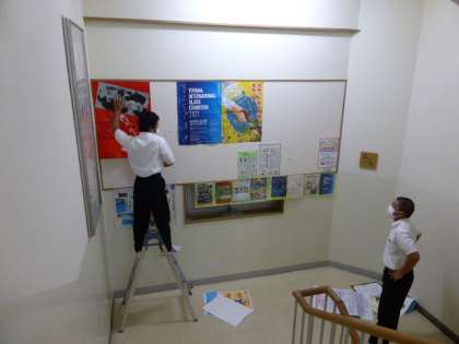 広報実践部 公開日 2021/09/02 更新日 2021/09/02 日々の活動から 9月2日(木) 踊り場のポスターを貼り替えました。 画像上段は、貼り替える前 画像中段は、貼り替え中 画像下段は、貼り替え後です。