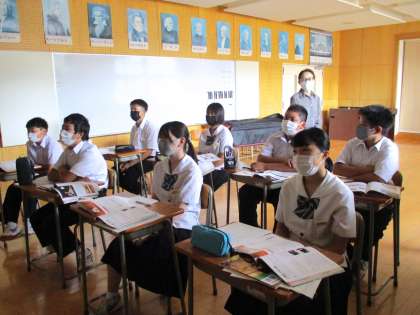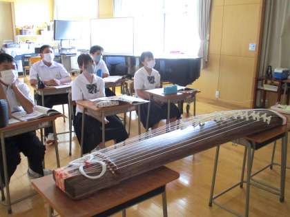 1年3限 音楽 公開日 2021/09/03 更新日 2021/09/03 日々の活動から 9月3日(金) 1年生の音楽の授業の様子です。 箏の学習を行っています。 今学期には、箏の特別指導に講師の方をお招きして学習する予定です。