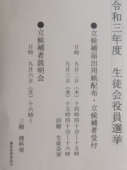 今週、令和3年度生徒会役員選挙の告示がありました。