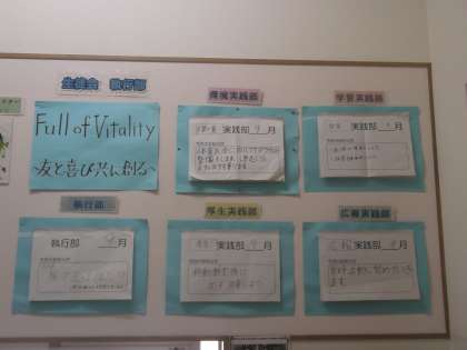 生徒会掲示コーナーには、9月の生徒会執行部及び各実践部からのお知らせが掲示されています。