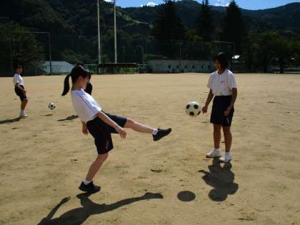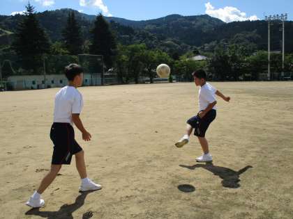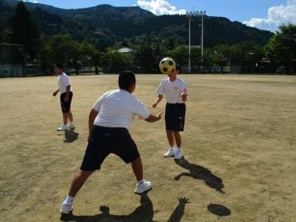 1年2限 保健体育 公開日 2021/09/06 更新日 2021/09/06 日々の活動から 9月6日(月) 1年生の保健体育の授業の様子です。 サッカーボールを足で止めて(トラップ)、パスする練習をしていました。