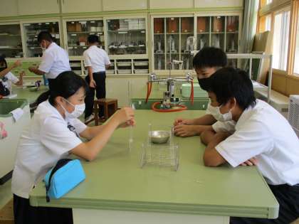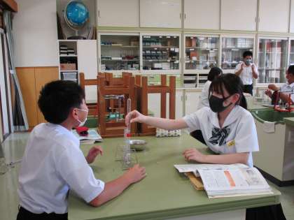 9月6日(月) 1年生の理科の授業の様子です。 固体から発生した気体が何か調べる実験をしていました。