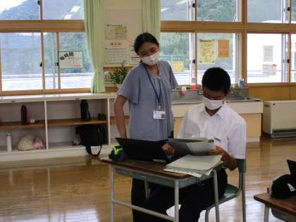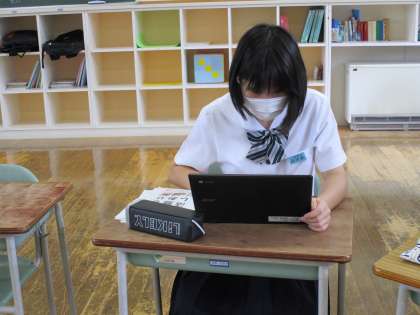 9月6日(月) 2年生の学級活動の様子です。 タブレットで「14歳の挑戦」のまとめをしました。
