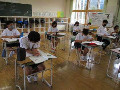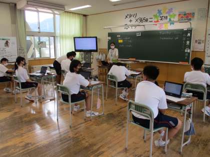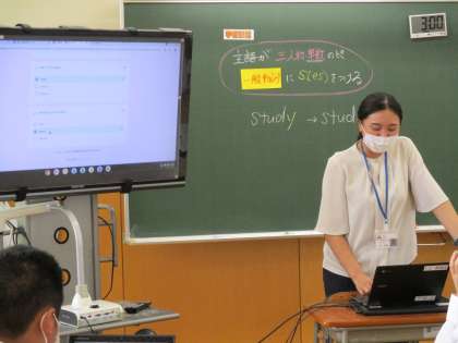 1年5限 英語 公開日 2021/09/07 更新日 2021/09/07 日々の活動から 9月7日(火) 1年生の英語の授業の様子です。 タブレットを使って問題を解いた後、教科書を進みました。 主語が三人称単数の場合の動詞の変化について学習しました。