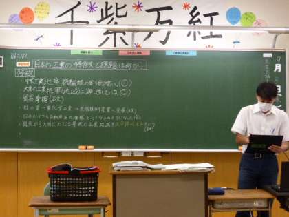 9月8日(水) 2年生の社会の授業の様子です。 日本の工業について学習しました。